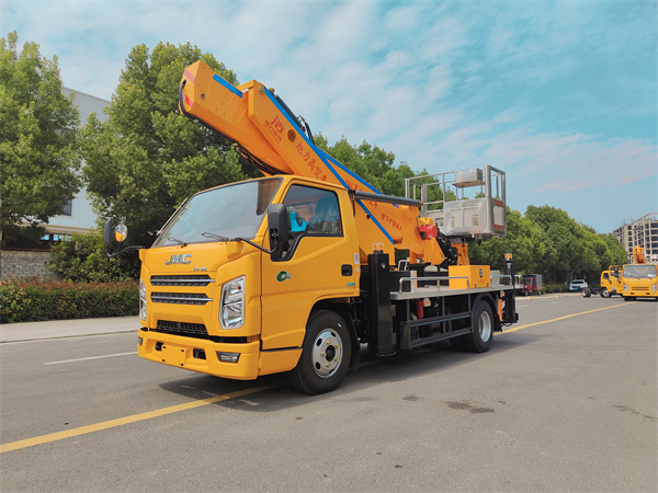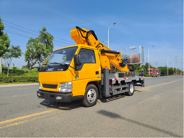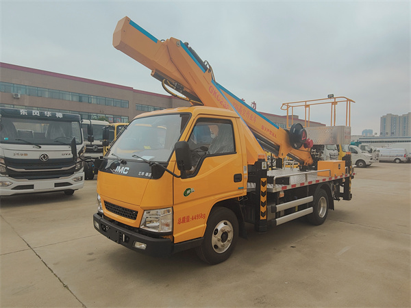 國六江鈴19.5米高空作業車 采用江鈴3815mm軸距底盤,型號:JX1083TK26帶空調、方向助力,由江鈴公司提供江鈴152馬力發動機,輪胎型號為7.50-16鋼絲胎。 江鈴19.5米高空作業車主要特點: 1、臂架采用高強度鋼板HQ60/5.0,折彎焊接成型...